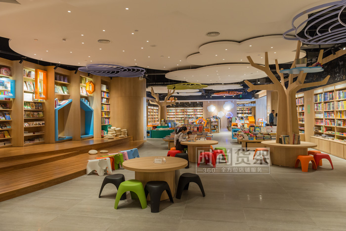 像云朵一樣的天花吊頂、大樹一樣的柱子,將兒童讀物區營造成了“童話世界”。