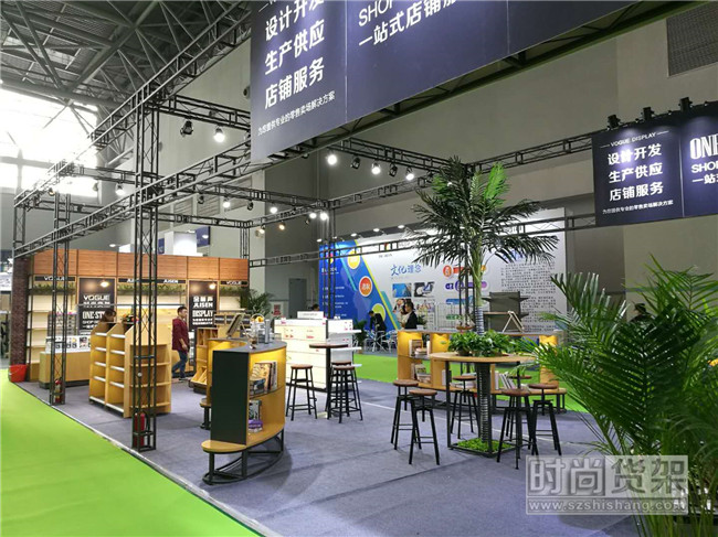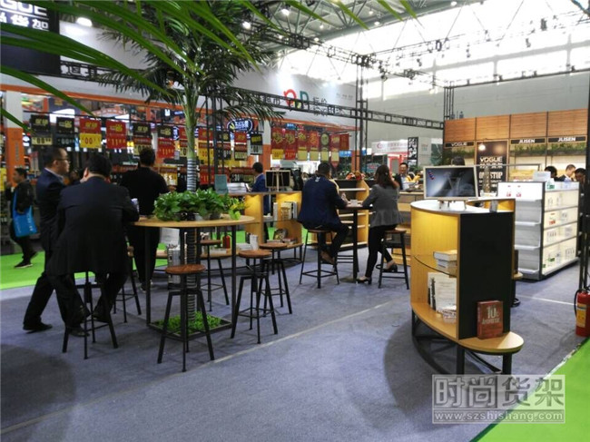 時尚貨架展位內還特意擺放了幾組吧臺,既方便讓觀眾坐下來了解貨架產品,又可供觀眾休息歇腳。