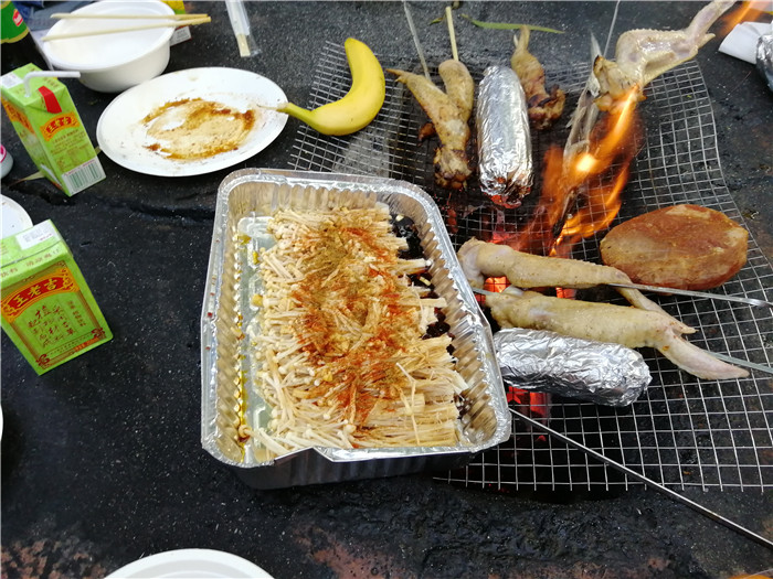 到達目的地后大家分成4桌落座,燒烤正式開始
