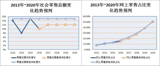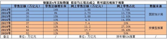 那么,想要達到50%占比的網上零售總額則需要在2020年達到約26萬億元。也就意味著,未來4年網上零售的年平均漲幅要達到約52%,比最初已經很難達到的年增長50%還要高出約2個百分點。