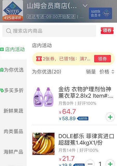 之所以在開通極速達僅3個月后就入駐京東到家,是因為這項業務的銷售數據超出了山姆預期。