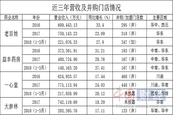 四大上市連鎖藥店近三年并購統計表 中國網財經制圖