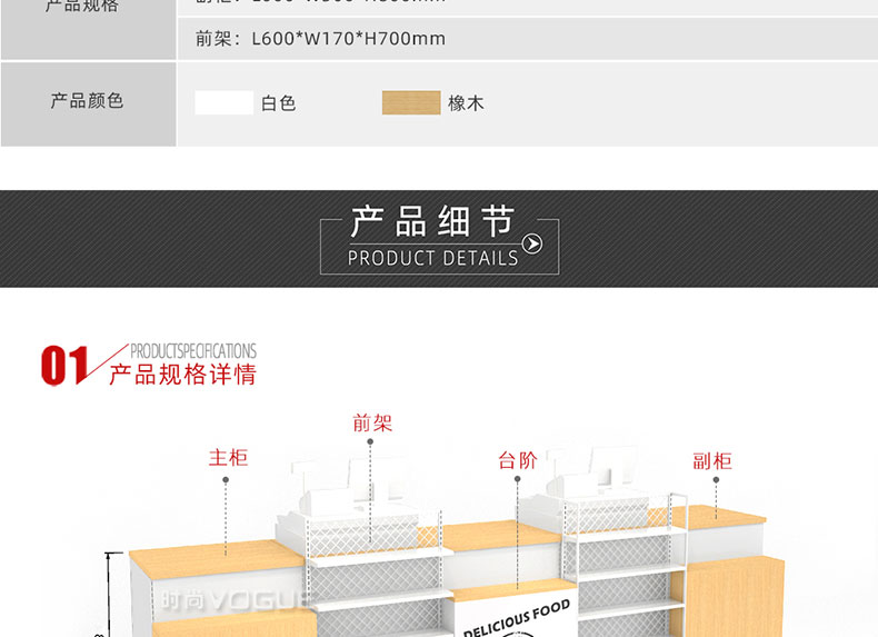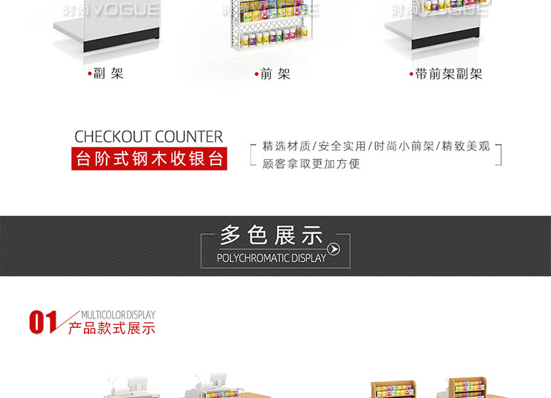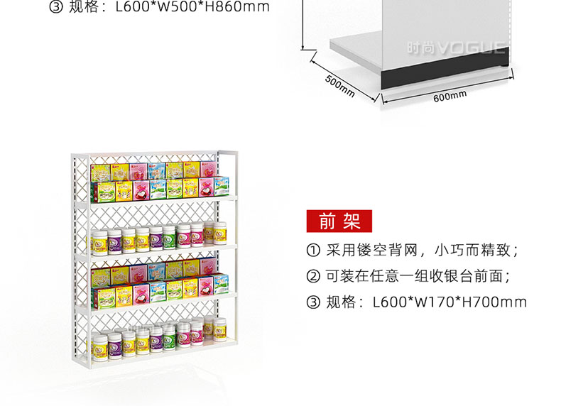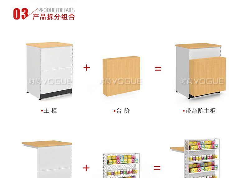 • 產品描述:這是時尚貨架針對母嬰店收銀區陳列最新推出的一款組合式收銀臺。