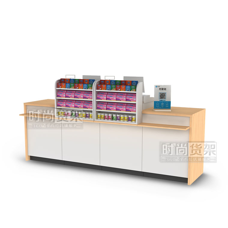 藥店經典組合收銀臺有藥店貨架供應商——時尚貨架打造,想了解其他款式藥店收銀臺請點擊m.nb-hs.com/pharmacy/ydsyt/。