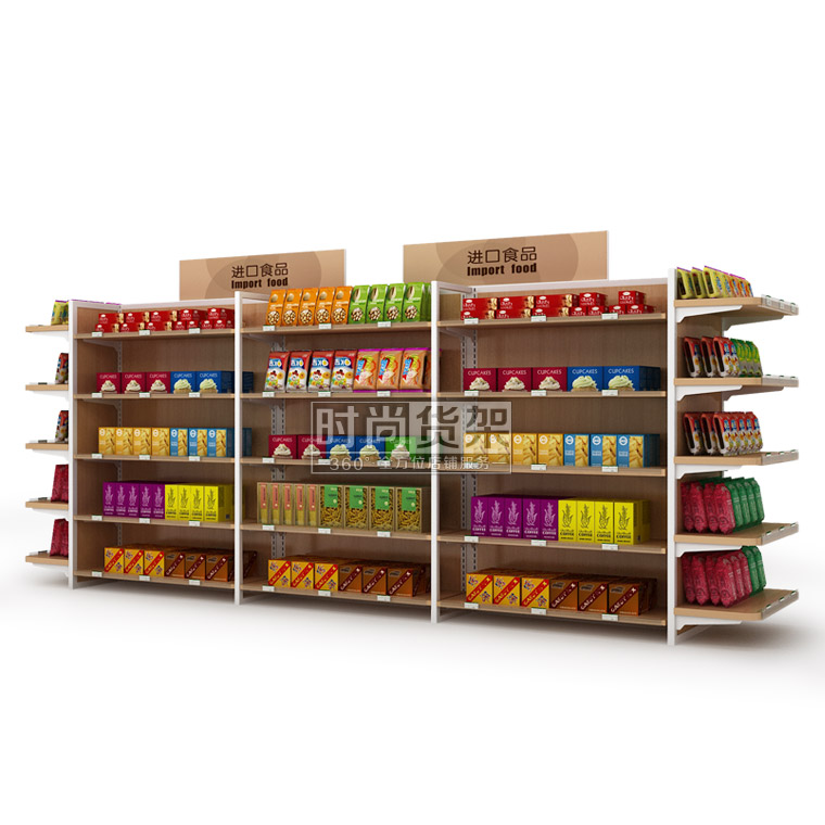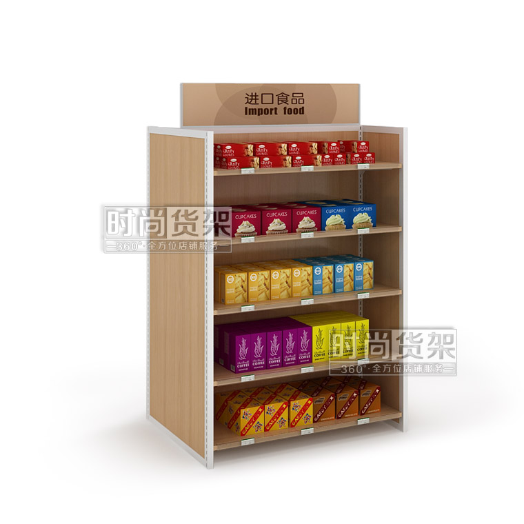 【產(chǎn)品名稱】便利店雙面食品貨架/進(jìn)口食品貨架/木背板零食展示架