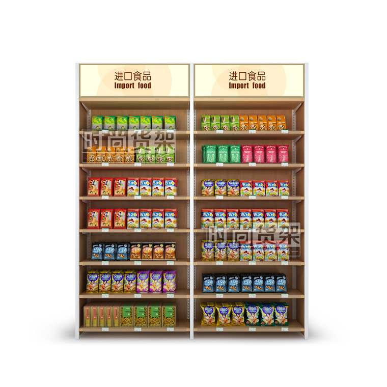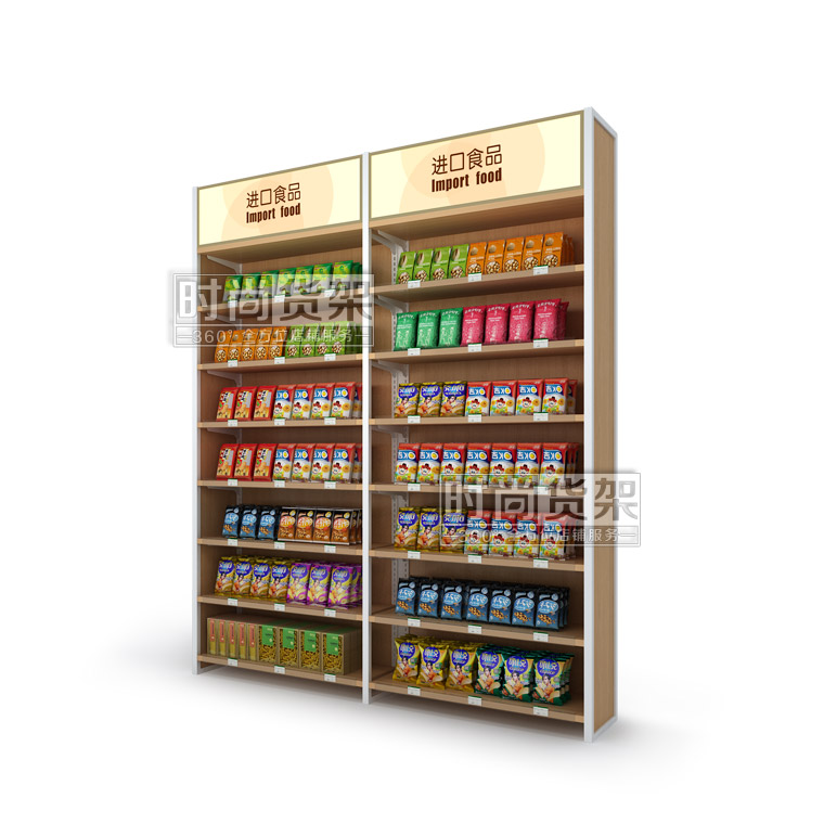 【產品名稱】全家便利店食品貨架/高檔進口食品展示架/木背板零食架