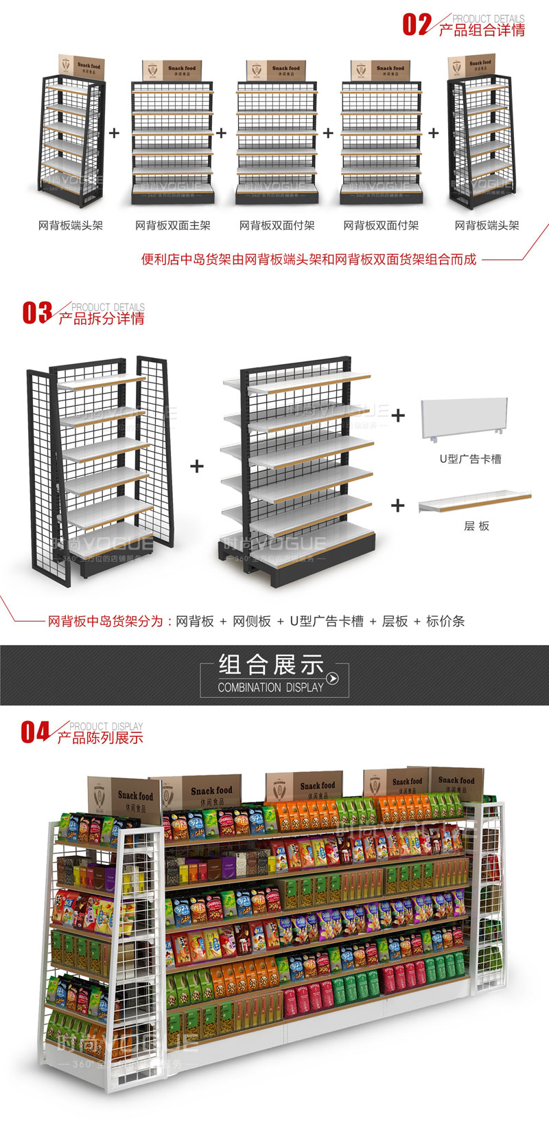 【產品名稱】便利店網背板中島貨架/進口食品貨架/網背板零食貨架