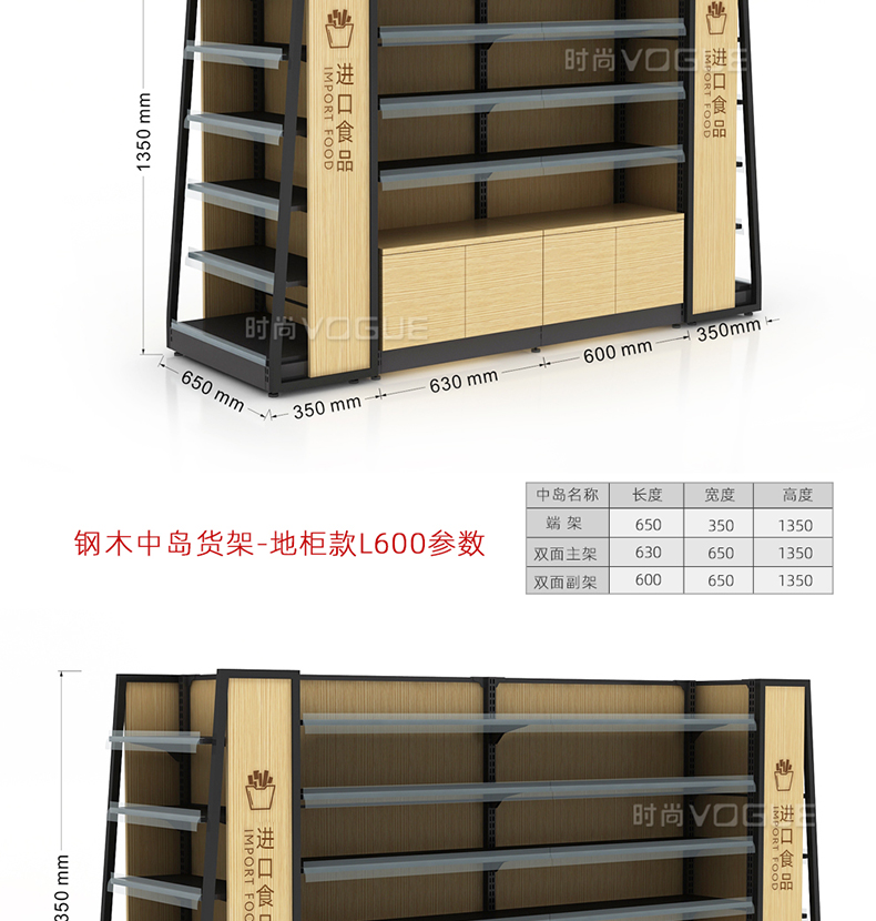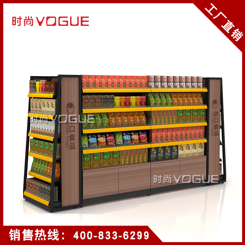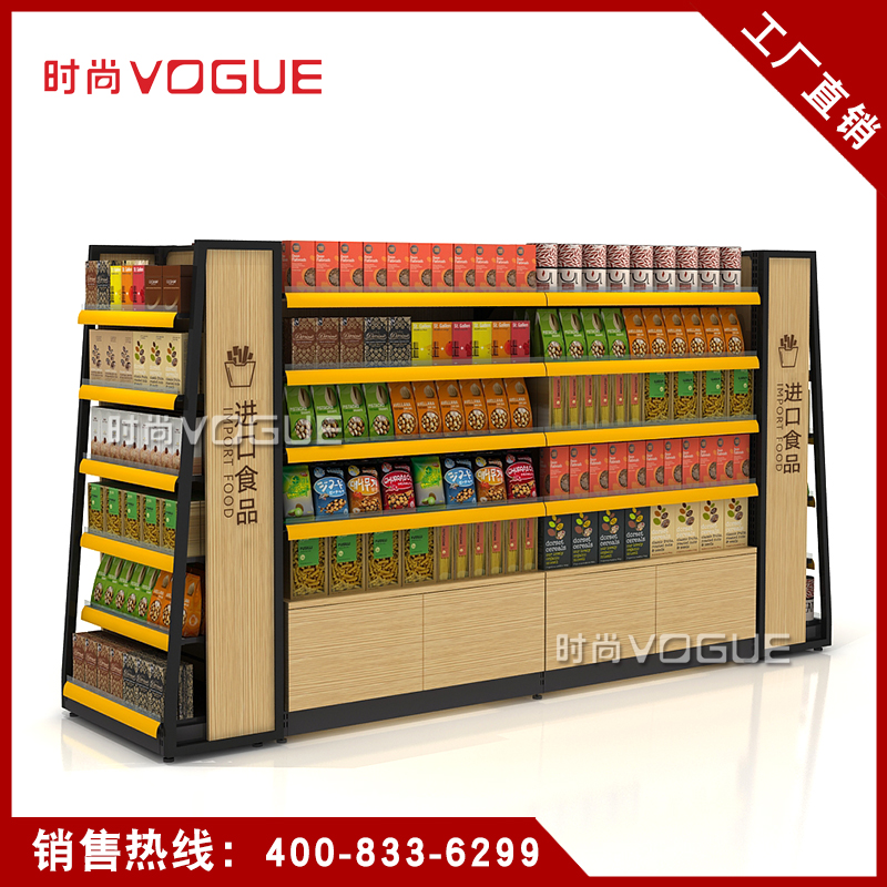 • 產品描述:本款木背板食品貨架是便利店貨架廠家最新推出的一款便利店貨架,底部地柜設計增加儲物功能。