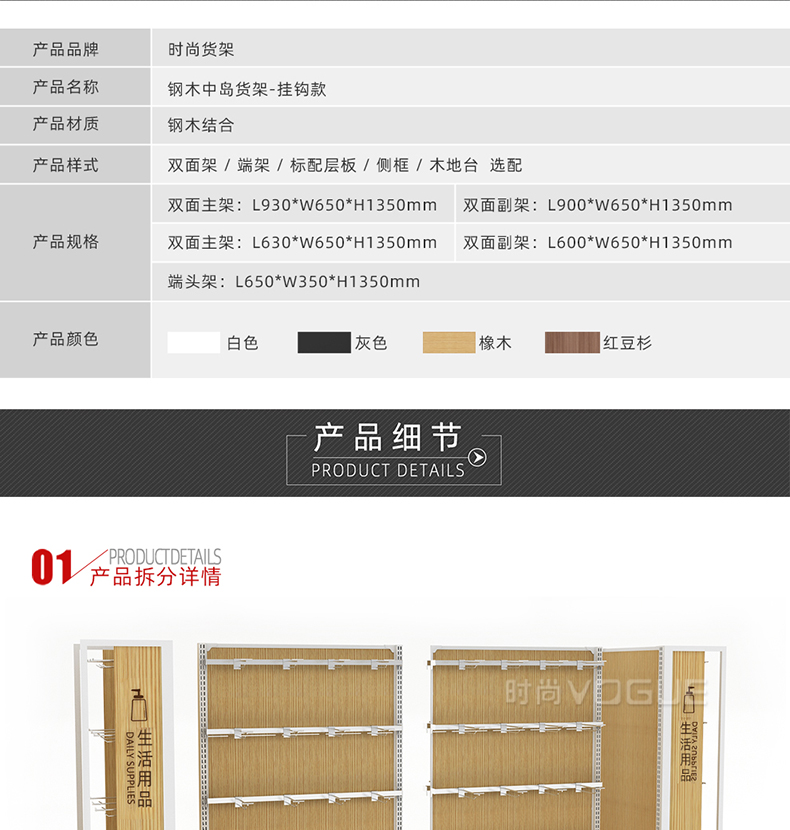 • 產品描述:本款木背板食品貨架是便利店貨架廠家最新推出的一款便利店貨架,掛鉤和層板可以互換,底部增加木地臺,更加美觀大氣。