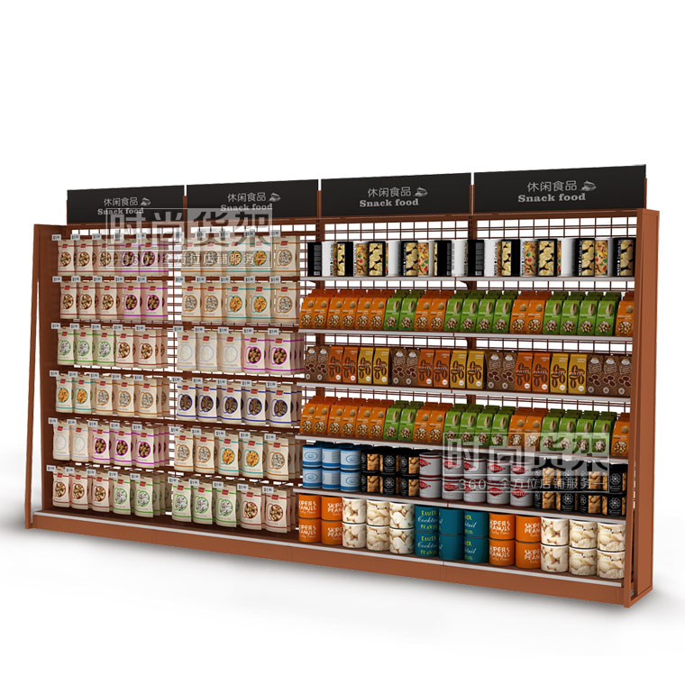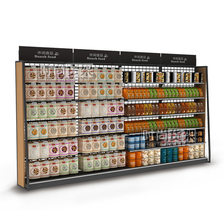 【產品名稱】便利店食品貨架/便利店靠墻貨架/網背板精品零食展示架