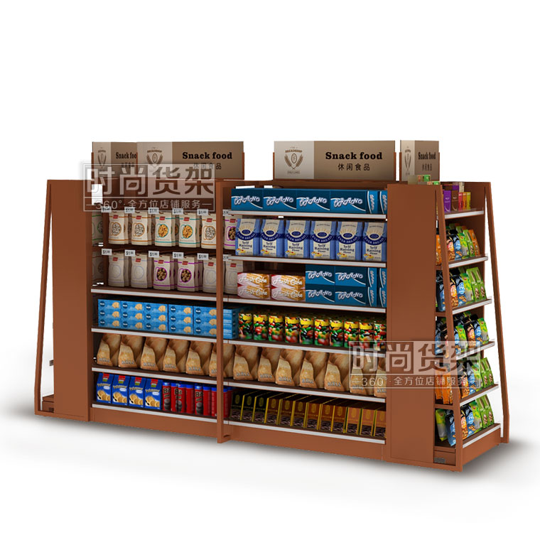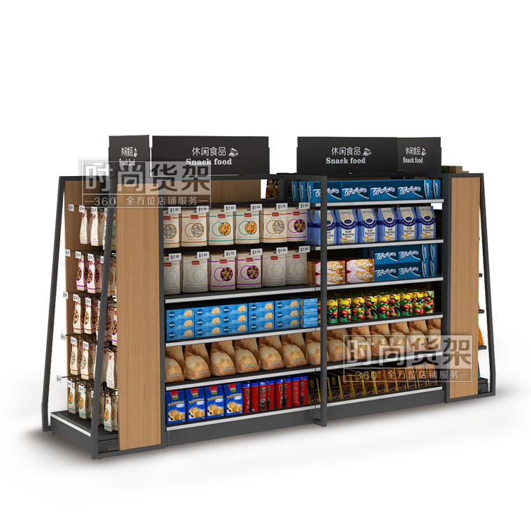本款產品是時尚貨架為店鋪食品區設計生產的一款鋼木結構的便利店食品貨架,如需了解便利店靠墻貨架,請點擊:http://m.nb-hs.com/store/dshj/72.html ,更多詳情請咨詢客服!