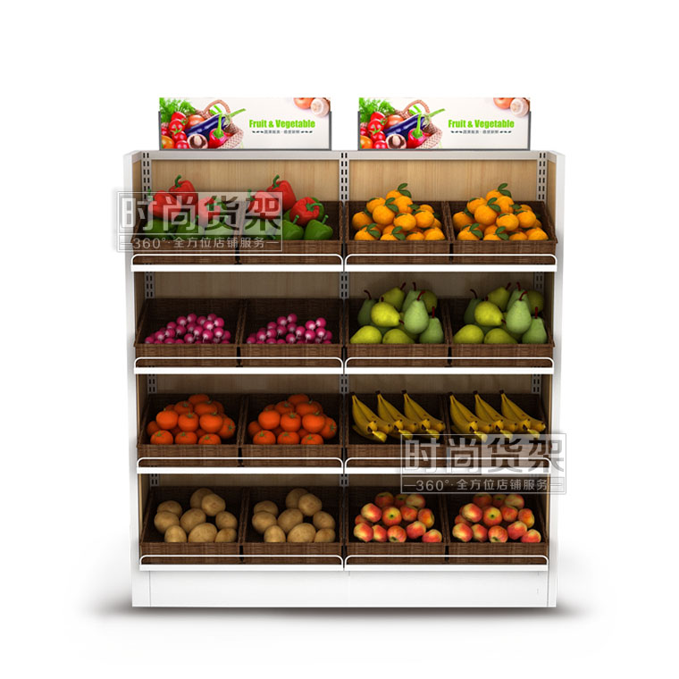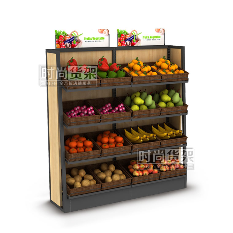 本款便利店蔬果架是由時尚貨架設(shè)計生產(chǎn)的一款木背板單面果蔬架。如需了解其他款式,可以選擇便利店網(wǎng)背板果蔬架,果蔬生鮮促銷籃等便利店果蔬區(qū)貨架。