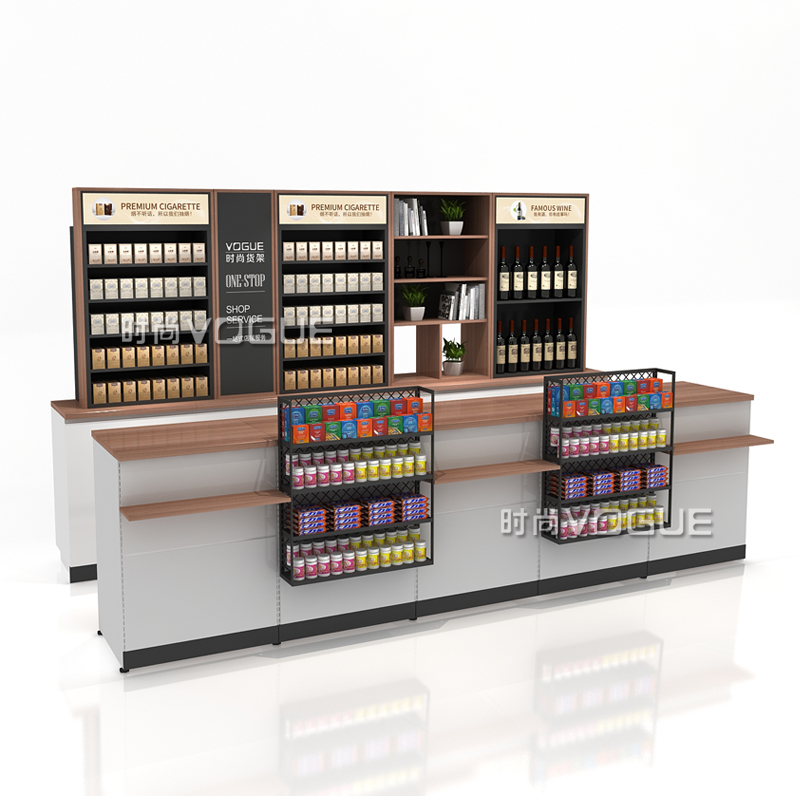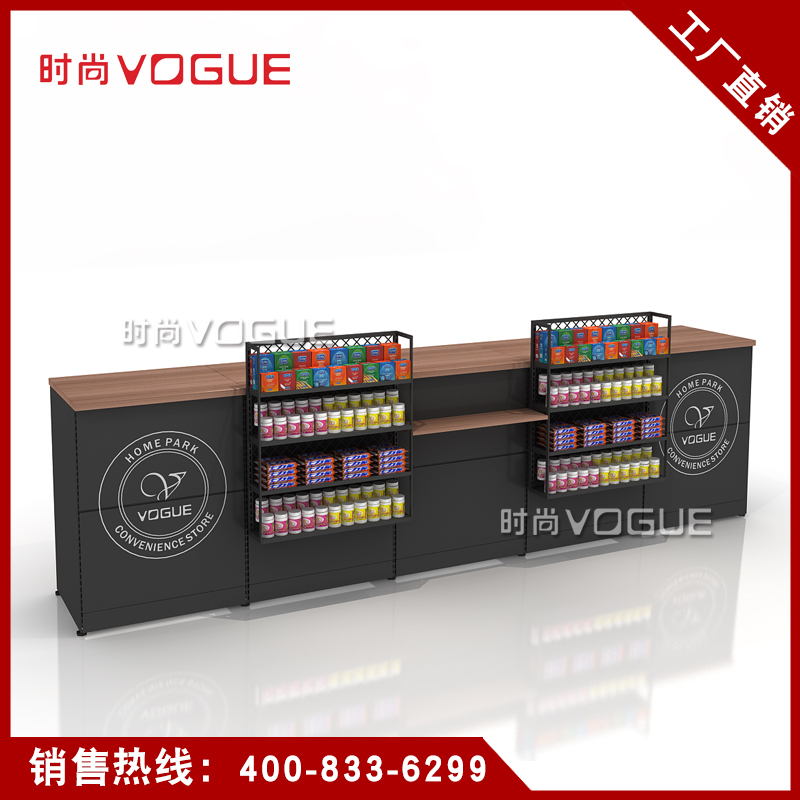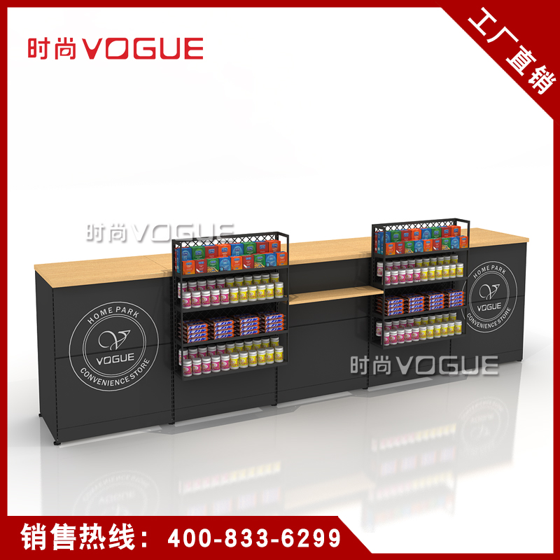 本款便利店收銀臺是時尚貨架為連鎖便利店設計生產的一款多功能組合式便利店收銀臺,如需了解更多小型便利店收銀臺,請咨詢客服人員!