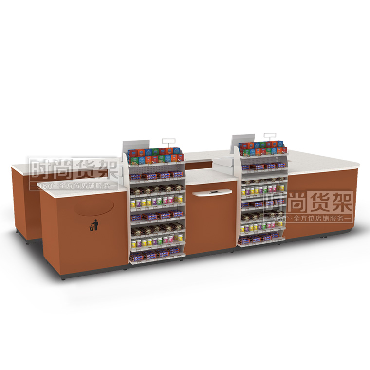 本款便利店收銀臺是時尚貨架為連鎖便利店設計生產的一款多功能組合式便利店收銀臺,如需了解更多小型便利店收銀臺,請咨詢客服人員!