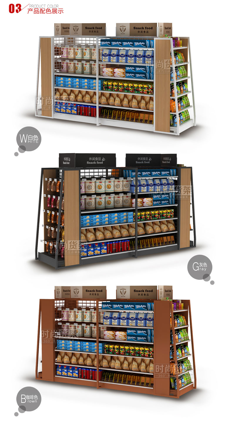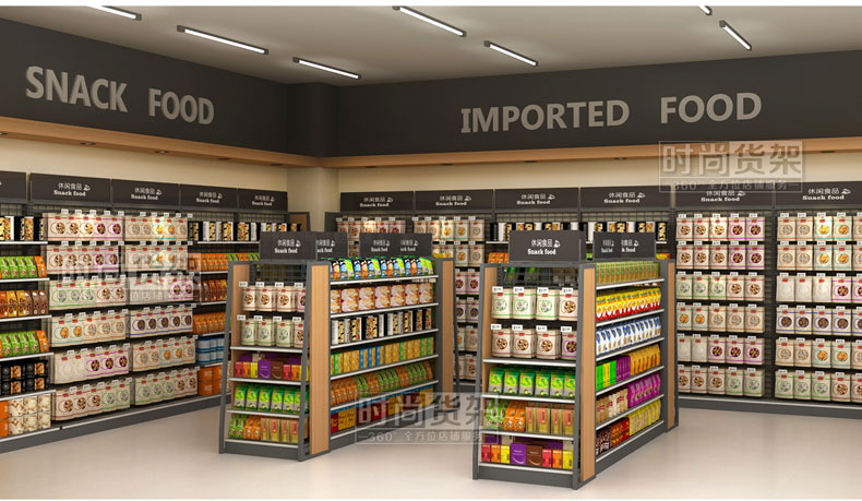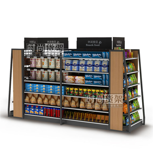 此款超市貨架是深圳貨架廠【時尚貨架】專為超市食品區域打造的一款通透性更強的網背板零食貨架。更多超市貨架可點擊http://m.nb-hs.com/supermarket/spzsq/,如需采購超市貨架,請咨詢客服!